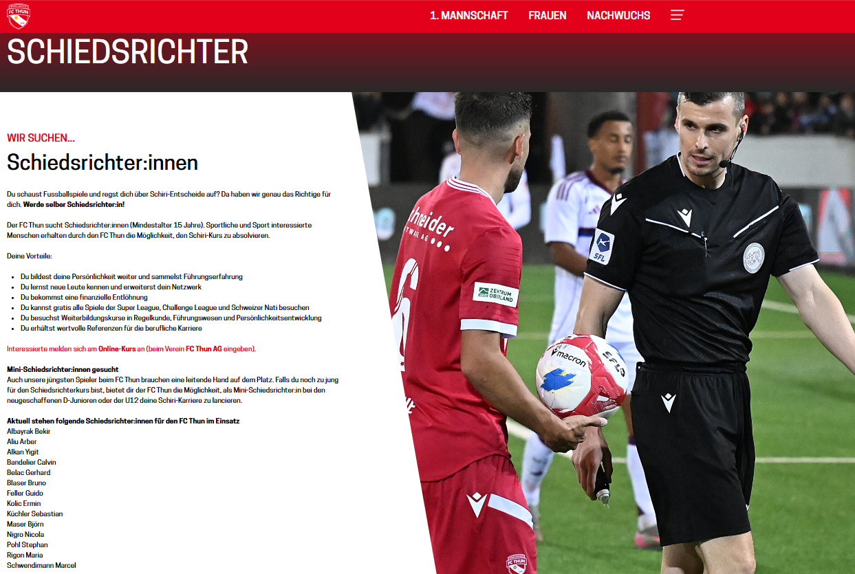 - Siehe Schiedsrichter - Verein FC Thun Berner Oberland - Club - FC Thun Berner Oberland
